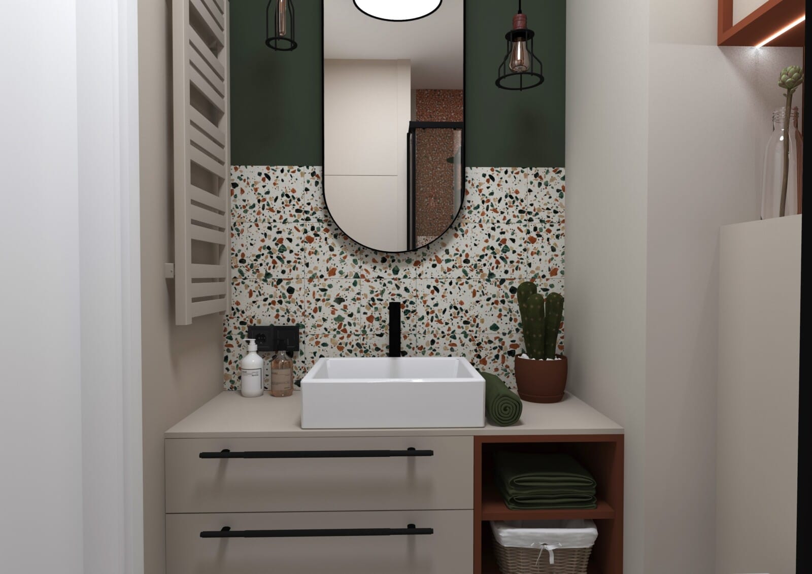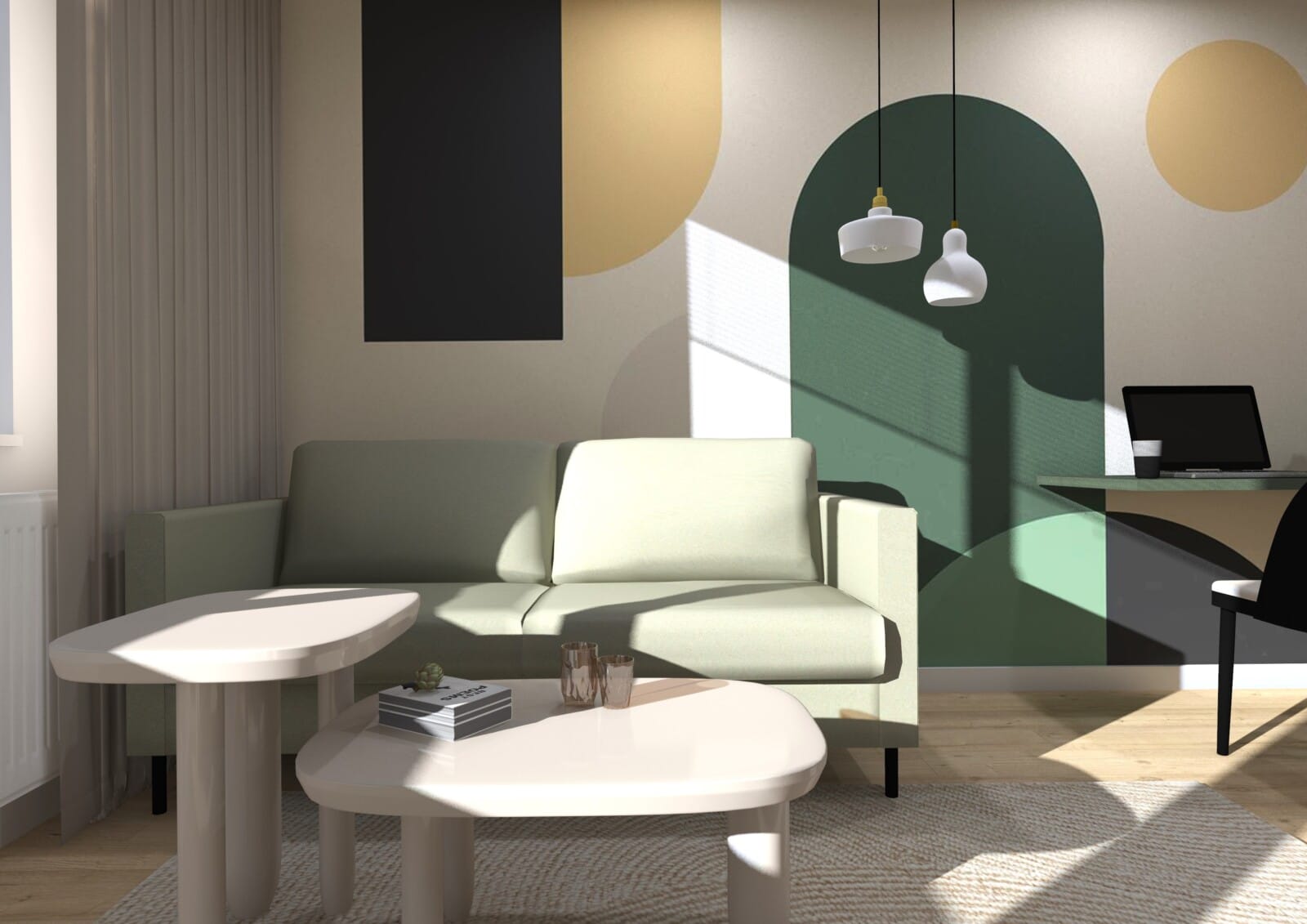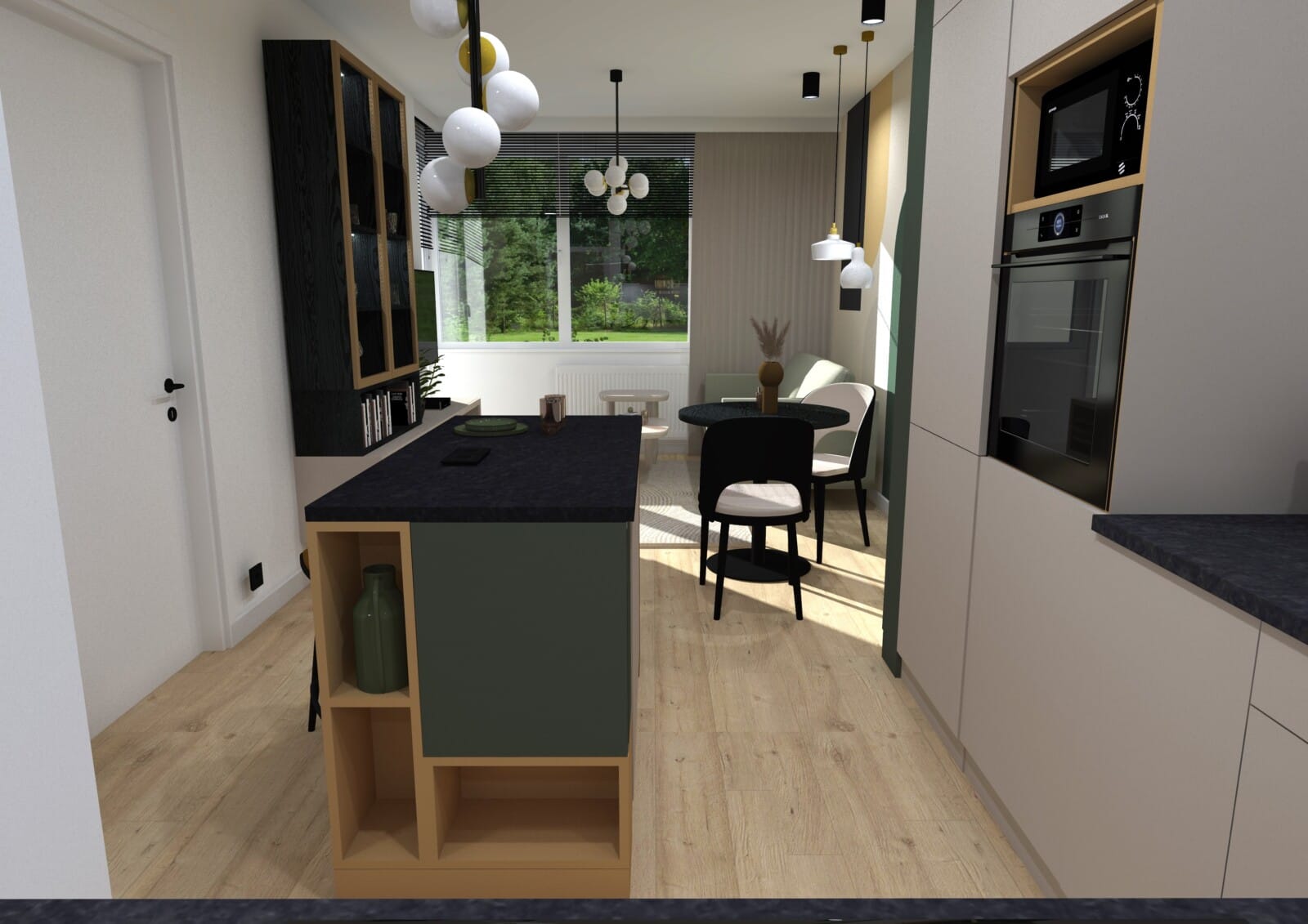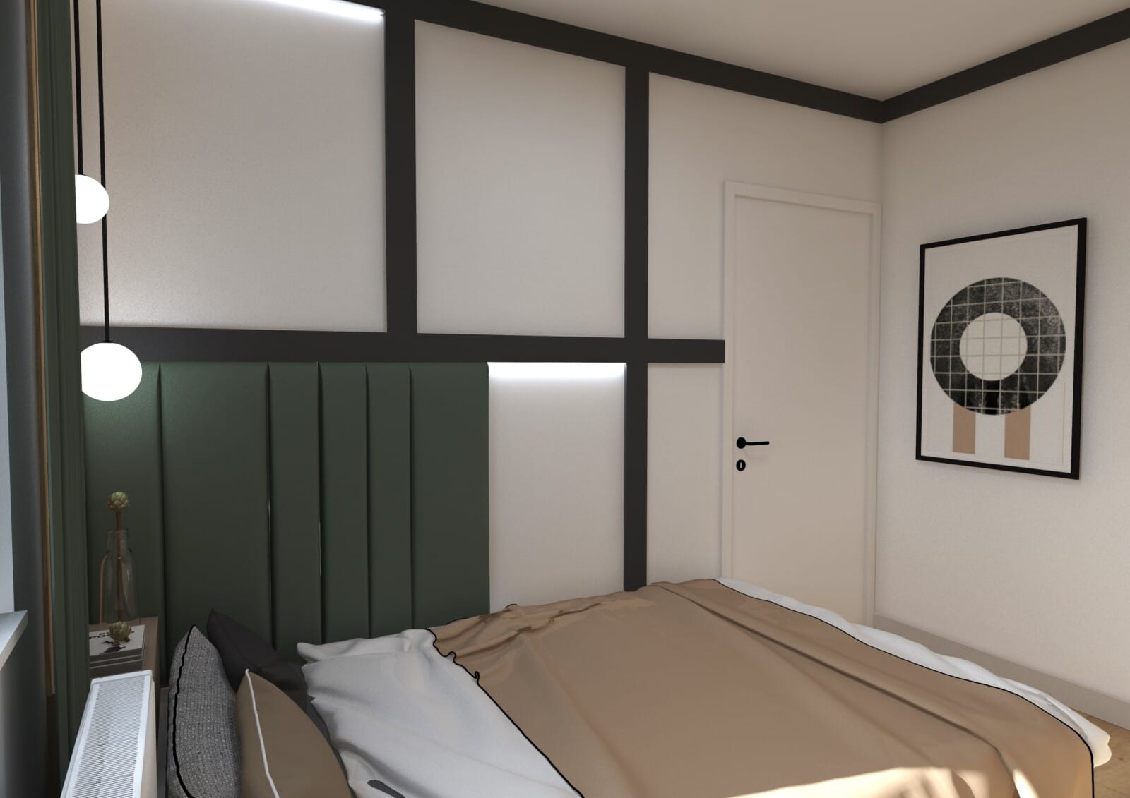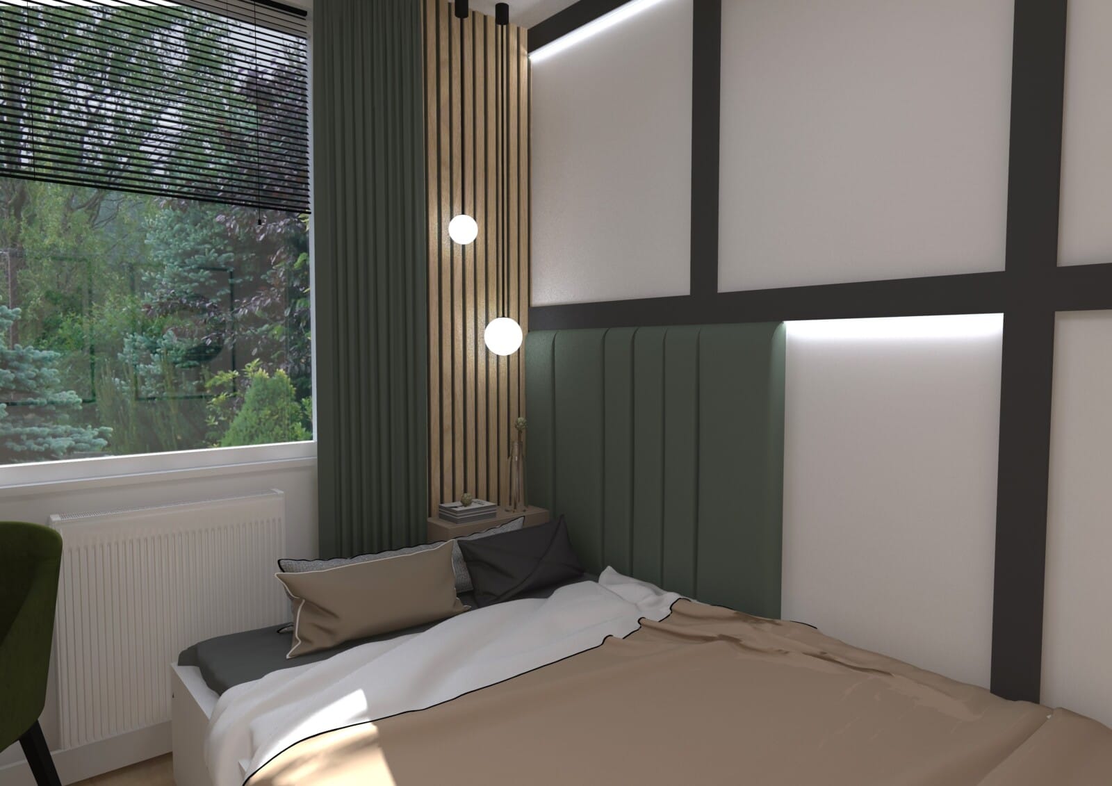 Projekt apartamentu w Krakowie to przestrzeń dla młodej, zapracowanej pary. To prawie czterdziesto metrowe miejsce do odpoczynku, a w razie potrzeby również do pracy zdalnej z wydzielonymi do tego przestrzeniami w oddzielnych pomieszczeniach. Kolorami dominującymi jest zieleń i odcień musztardowy z dodatkiem czerni.